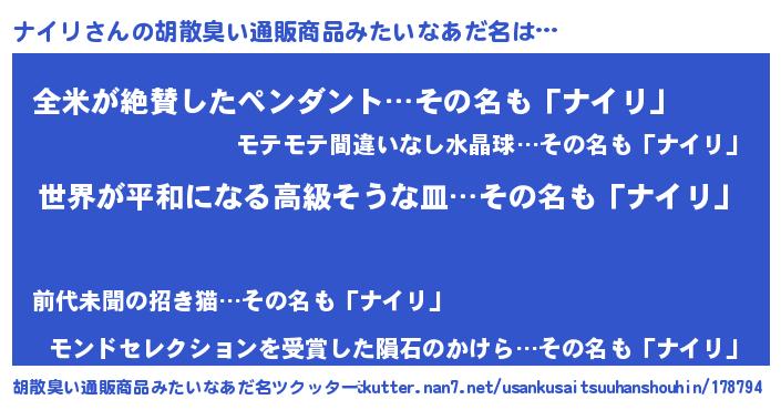 | ポケモン風あだ名 | 『ナイリダネ』『ヒナイリ』 |