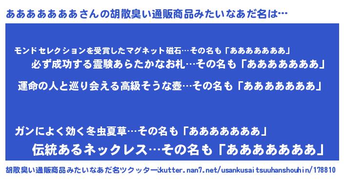 | 2回繰り返すあだ名 | 『ああああ』『ぼさぼさ』『ああああ』 |