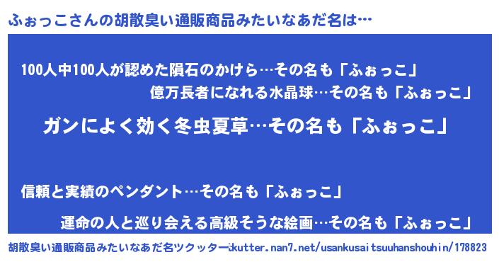 | 女子向けラノベタイトル風あだ名 | 『ふぉっこなんてお断りですっ。』 |