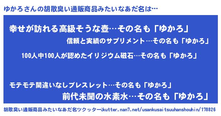 | ヒーロー風カッコイイあだ名 | 『正義の使者ゆかろ』『ネオユカロ』 |
