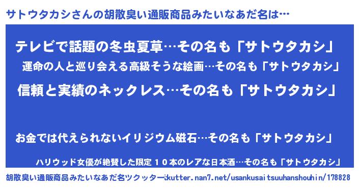 | ポケモン風あだ名 | 『サトゴンZ』『ヒサトウタカシ』 |