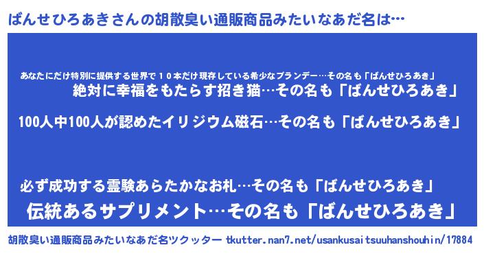 | ヘコむあだ名 | 『ばん太郎』『ばんせひろあき(笑)』 |