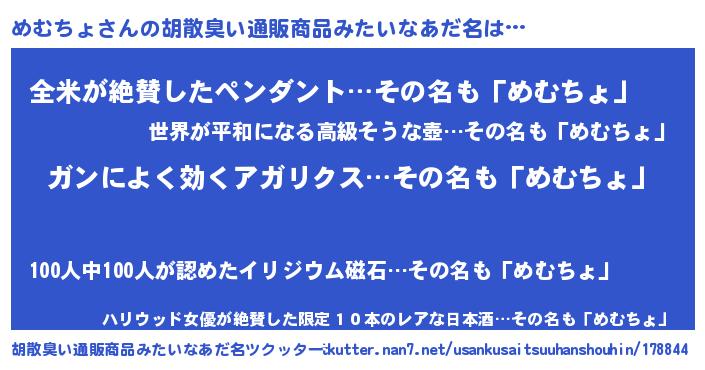 | 意味不明あだ名 | 『しいたけ科めむちょ属』『自称めむちょ』 |