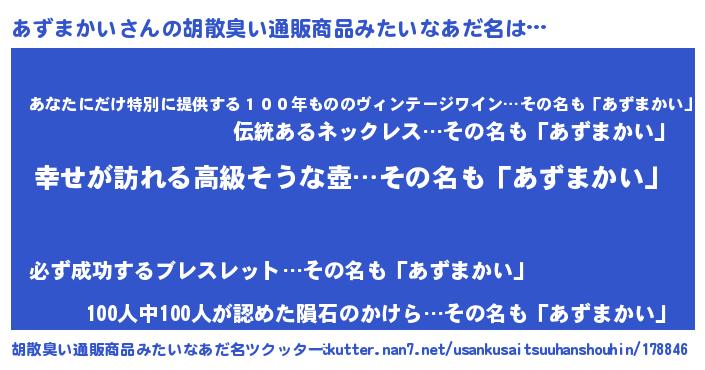 | ヘコむあだ名 | 『牛乳』『あずお』『あずっふぃ~』 |