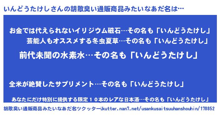 | 意味不明あだ名 | 『永久保存いんどうたけし』 |