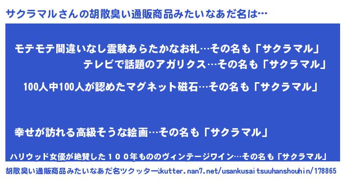 | 男性向けラノベタイトル風あだ名 | 『おまえをオタクにしてやるから、俺をサクラマルにしてくれ! 』 |