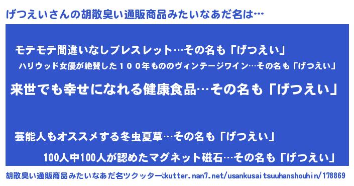| ヘコむあだ名 | 『げつえい(笑)』『げつにー』 |