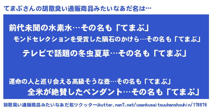 | 意味不明あだ名 | 『自称てまぶ』『永久保存てまぶ』 |