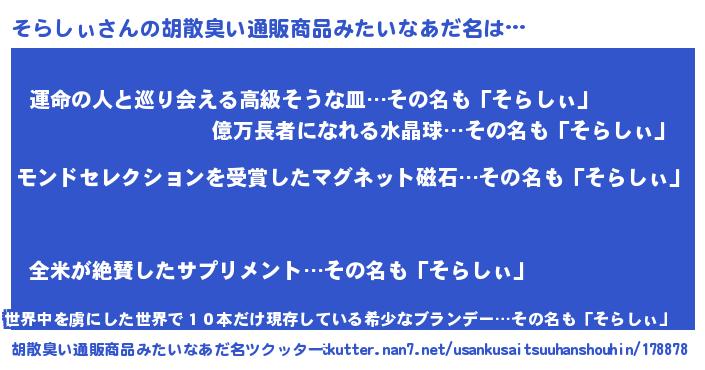 | ヘコむあだ名 | 『酢こんぶ』『そらふぇ~』 |