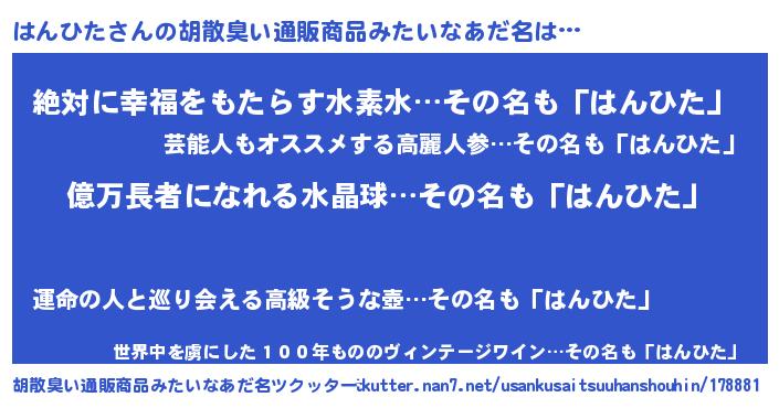 | 意味不明あだ名 | 『ペロリンはんひた』『永久保存はんひた』 |