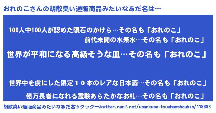 | ヘコむあだ名 | 『なまこ酢』『おれっふぃ~』 |