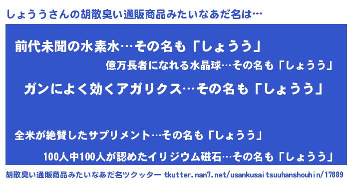 | ヘコむあだ名 | 『しょうう(笑)』『しょもー』『豆乳』 |