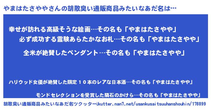 | 伝説のあだ名 | 『覚醒した遊び人やまはたさやや』 |