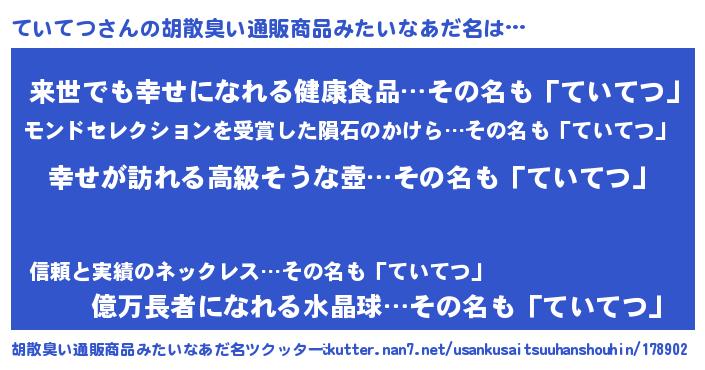 | ヒーロー風カッコイイあだ名 | 『ウルトラていてつマン』『ネオテイテツ』 |