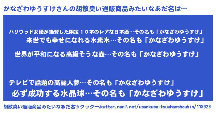 | 意味不明あだ名 | 『かなざわゆうすけフォーエバー』 |