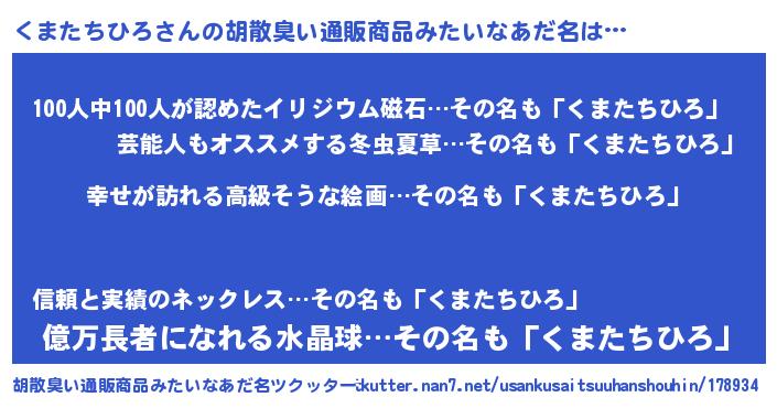 くまたちひろさんの胡散臭い通販商品みたいなあだ名をツクッター!