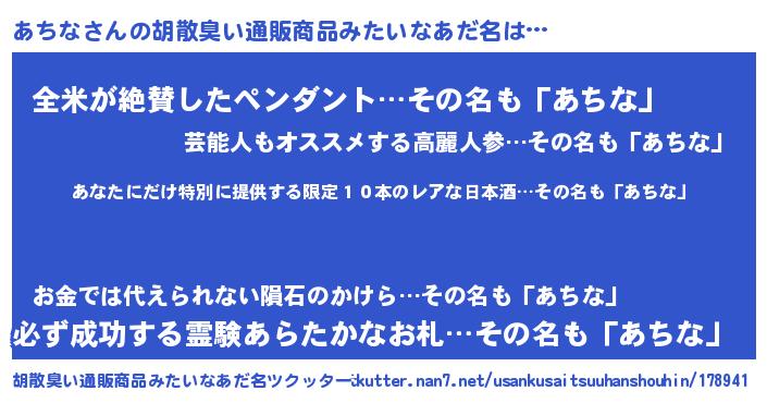 | ヘコむあだ名 | 『あちっぺ』『あちにゅー』 |