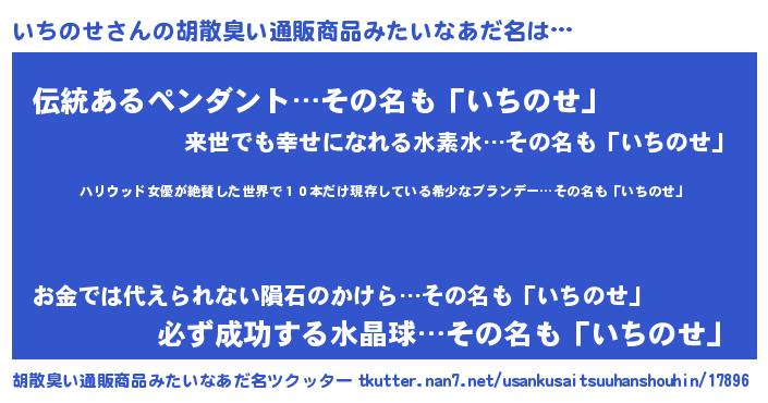 | 意味不明あだ名 | 『住所不定無職いちのせ(89歳)』 |