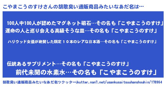 | 欧米人風あだ名 | 『ダレノガレこやまこうのすけ』 |