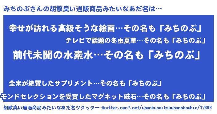 | 意味不明あだ名 | 『永久保存みちのぶ』『自称みちのぶ』 |