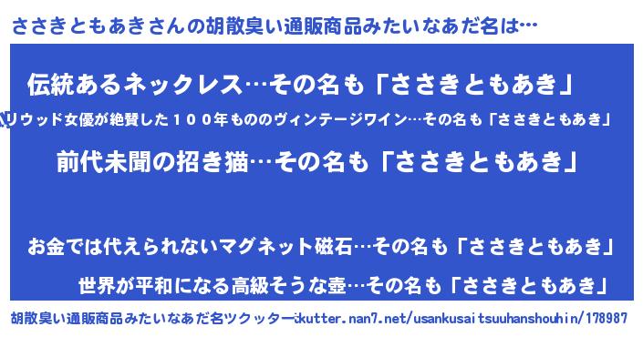 | 意味不明あだ名 | 『永久保存ささきともあき』 |