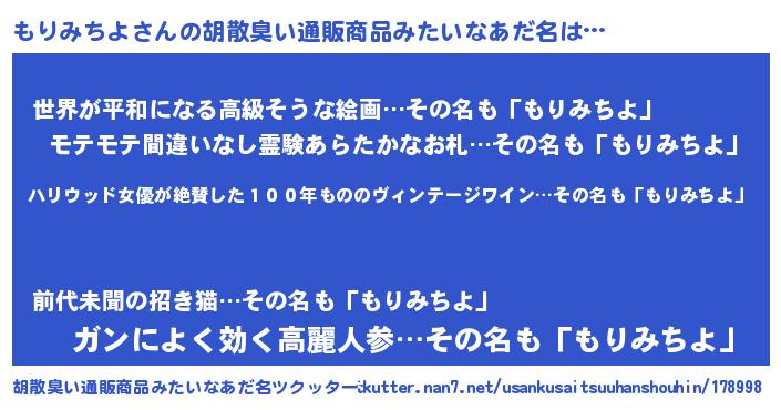 | 恥ずかしいあだ名 | 『もりっちょ』『モリミチヨデラックス』 |
