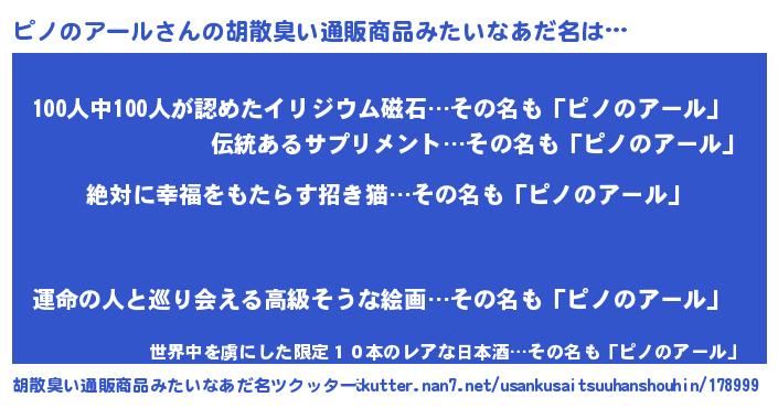 | ヘコむあだ名 | 『ピノのアール(小並感)』『ピノ太郎』 |