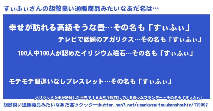 | 料理風あだ名 | 『すぃふぃのトマト煮』『すぃふぃごはん』 |