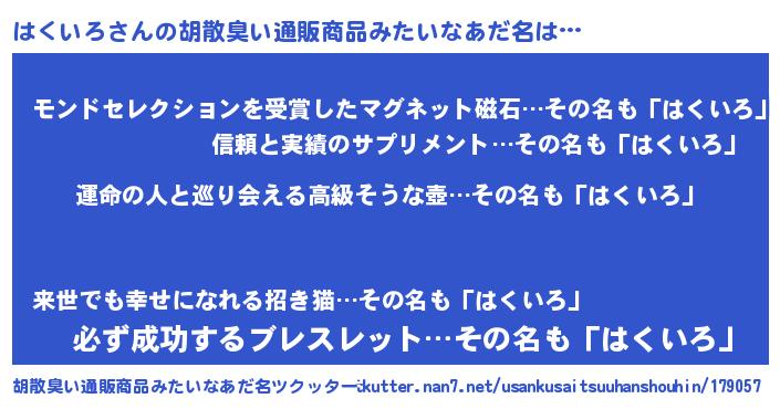 | ヘコむあだ名 | 『レバニラ』『はくにー』『はくお』 |