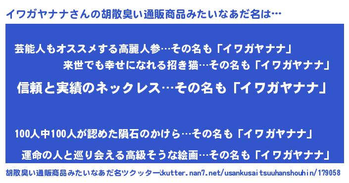 | 意味不明あだ名 | 『とにかく怪しいイワガヤナナ』 |
