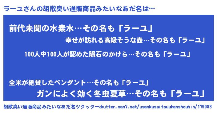 | ヘコむあだ名 | 『ラーユ(震え声)』『レバニラ』 |