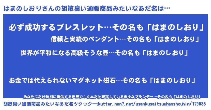 恥ずかしいあだ名 | 『はまっちょ』『プリティーはまのしおり』 |