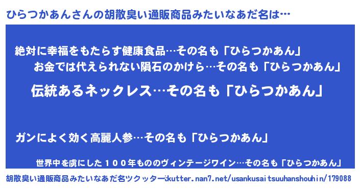 | 意味不明あだ名 | 『とにかく怪しいひらつかあん』 |