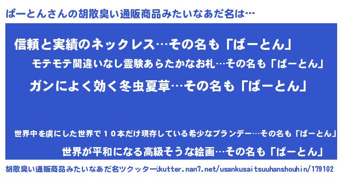 | ヘコむあだ名 | 『ばーっぺ』『つくし』『ばーにー』 |