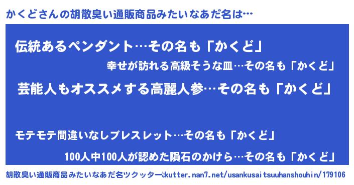 | 意味不明あだ名 | 『自称かくど』『とにかく怪しいかくど』 |