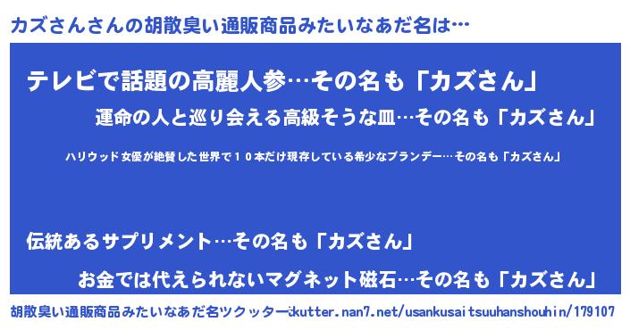 | ヘコむあだ名 | 『牛乳』『カズを』『カズにー』 |