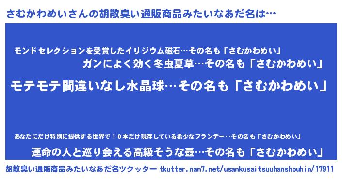 | 欧米人風あだ名 | 『マイケルさむかわめい』 |