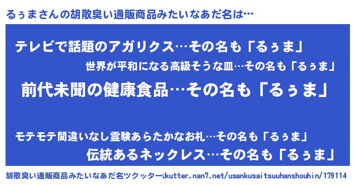 | 意味不明あだ名 | 『永久保存るぅま』『自称るぅま』 |