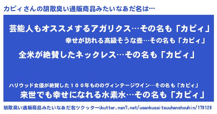 | ヘコむあだ名 | 『カピ太郎』『カピィ(爆)』『豆乳』 |