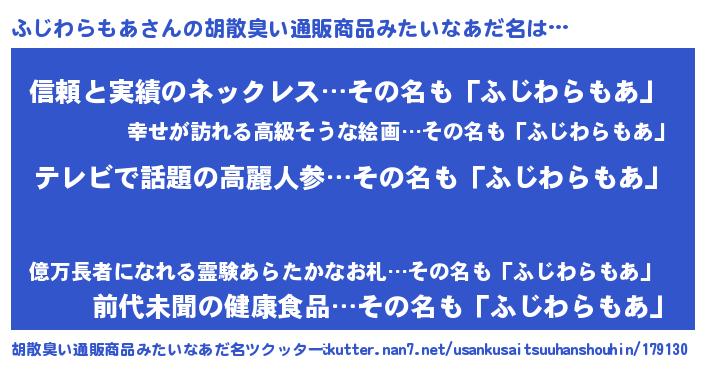 | 肩書あだ名 | 『ふじわらもあ閣下』『ふじわらもあ塾長』 |