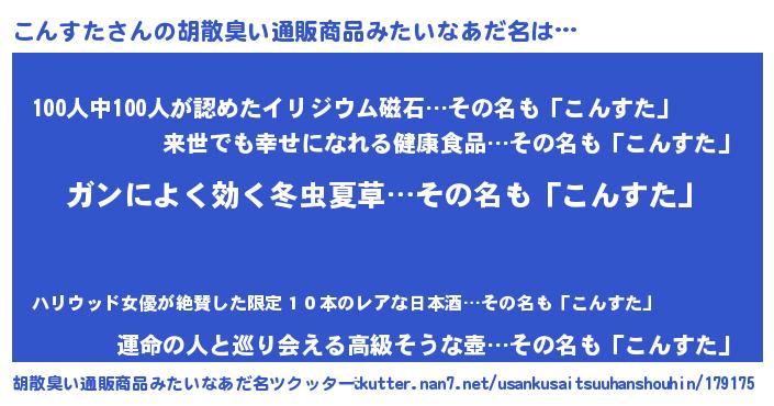 | 意味不明あだ名 | 『自称こんすた』『こんすたフォーエバー』 |