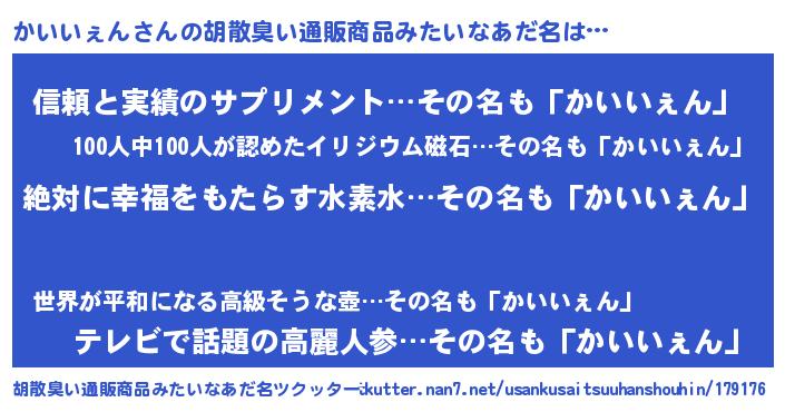 | ヘコむあだ名 | 『かいいぇん(苦笑)』『かいお』 |