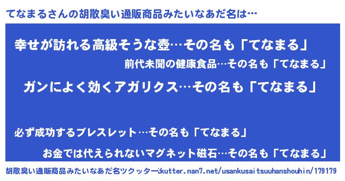 | 恥ずかしいあだ名 | 『テナマルデラックス』『てなっちょ』 |