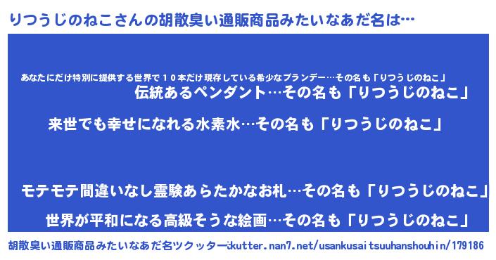 | 意味不明あだ名 | 『永久保存りつうじのねこ』 |