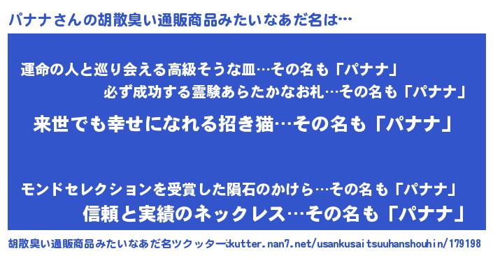 | 意味不明あだ名 | 『永久保存パナナ』『パナナフォーエバー』 |