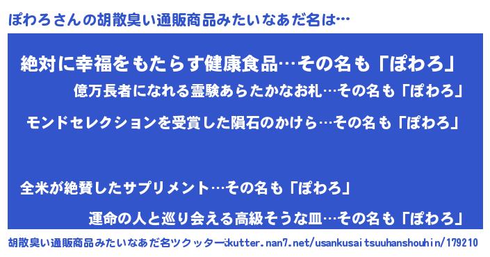 | ヒーロー風カッコイイあだ名 | 『慈愛の使者ぽわろ』『ネオポワロ』 |