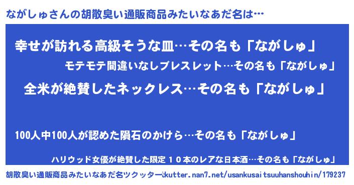 | 男性向けラノベタイトル風あだ名 | 『ながしゅの嫁は女の子じゃないと思った?』 |