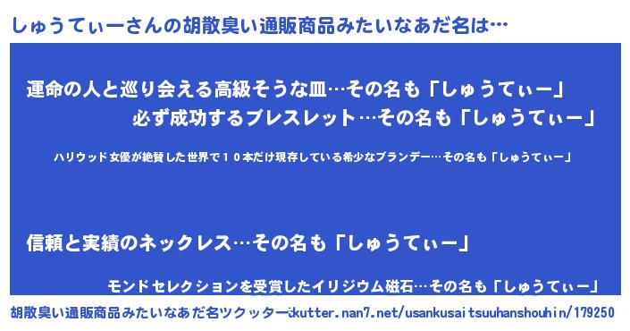 | 伝説のあだ名 | 『秘められし陰陽師しゅうてぃー』 |