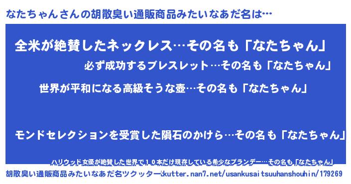 | ヘコむあだ名 | 『豆乳』『なたっ子』『なたにー』 |