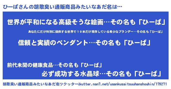 | 意味不明あだ名 | 『とにかく怪しいひーば』 |